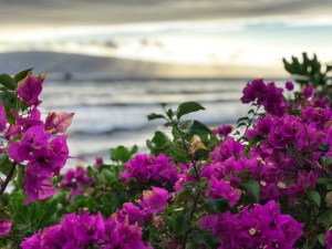 Maui beach with bougainvilla